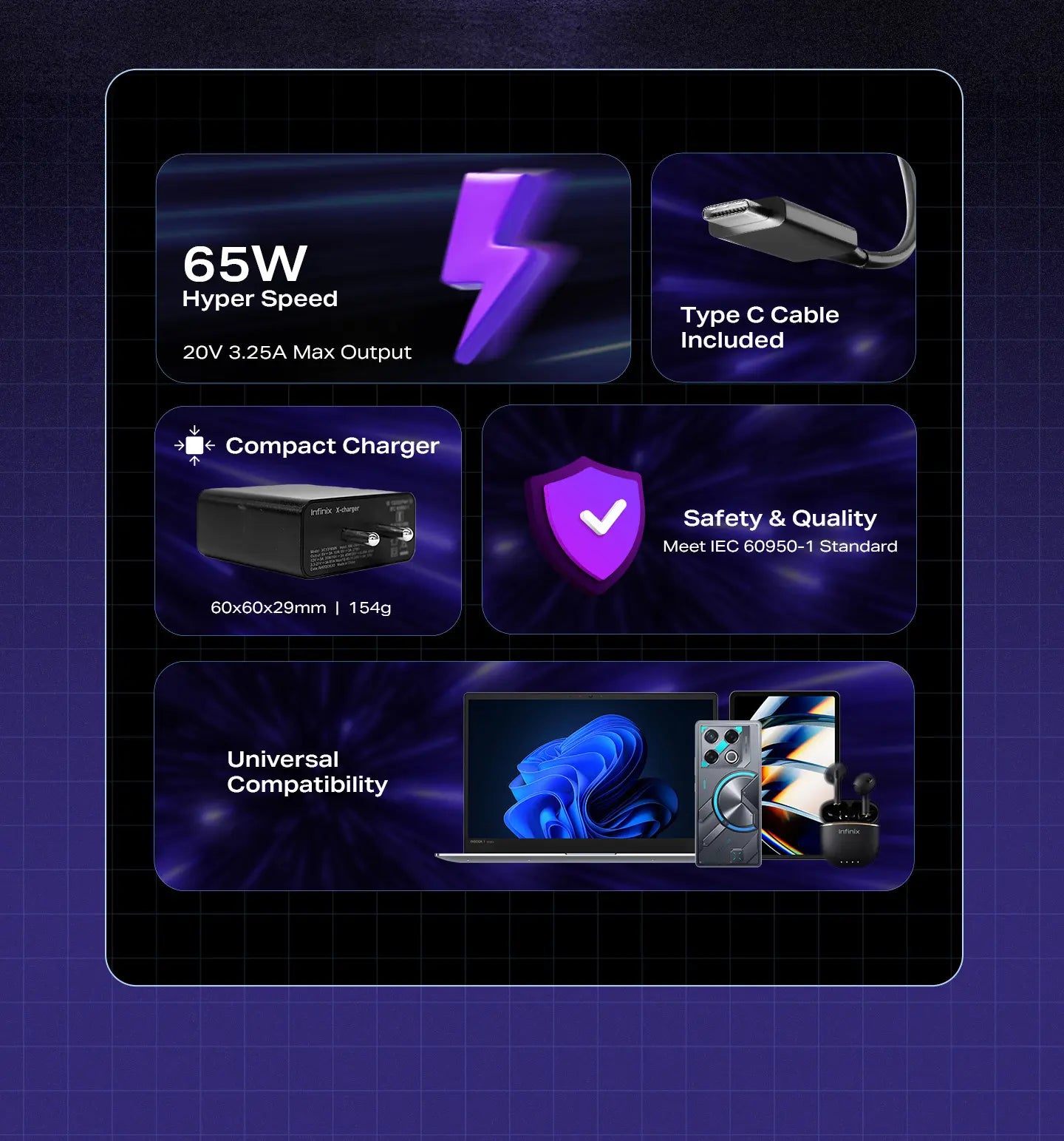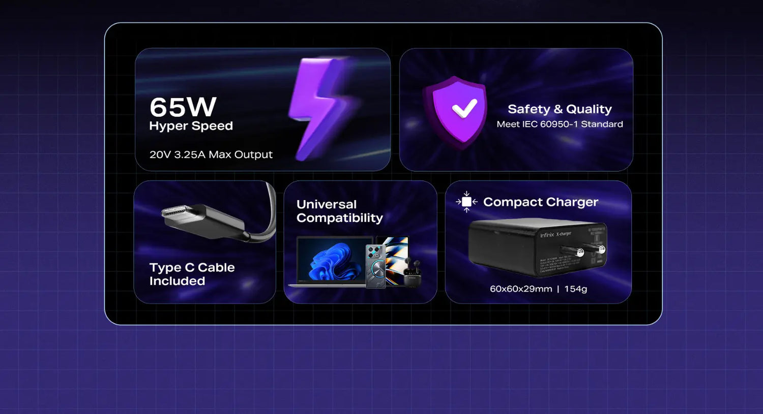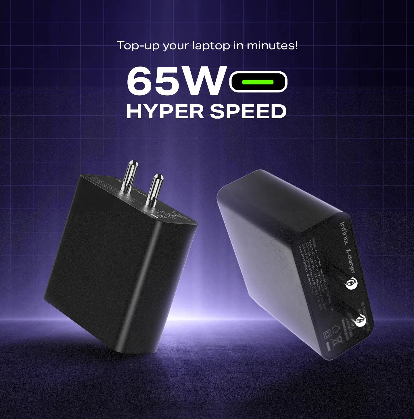 Top-up your laptop within minutes with 65W Hyper speed charging!
