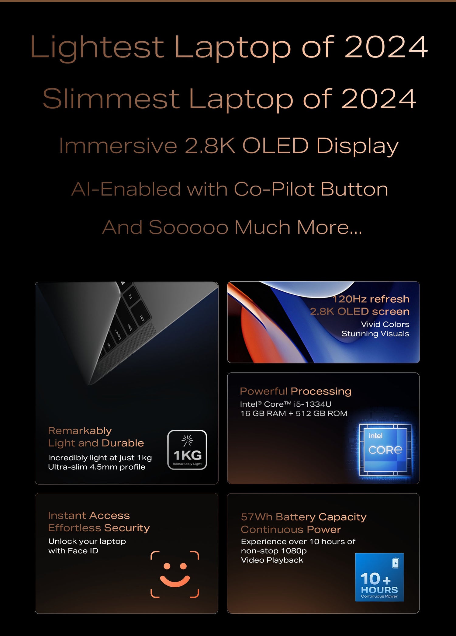 Lightest and Slimmest OLED Laptop, 1KG light and just 4.5mm thin